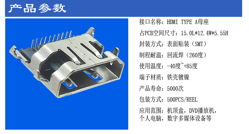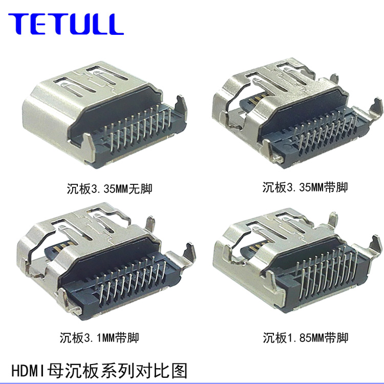 HDMI 19P母座沉板3.35 DIP四脚插板01-22