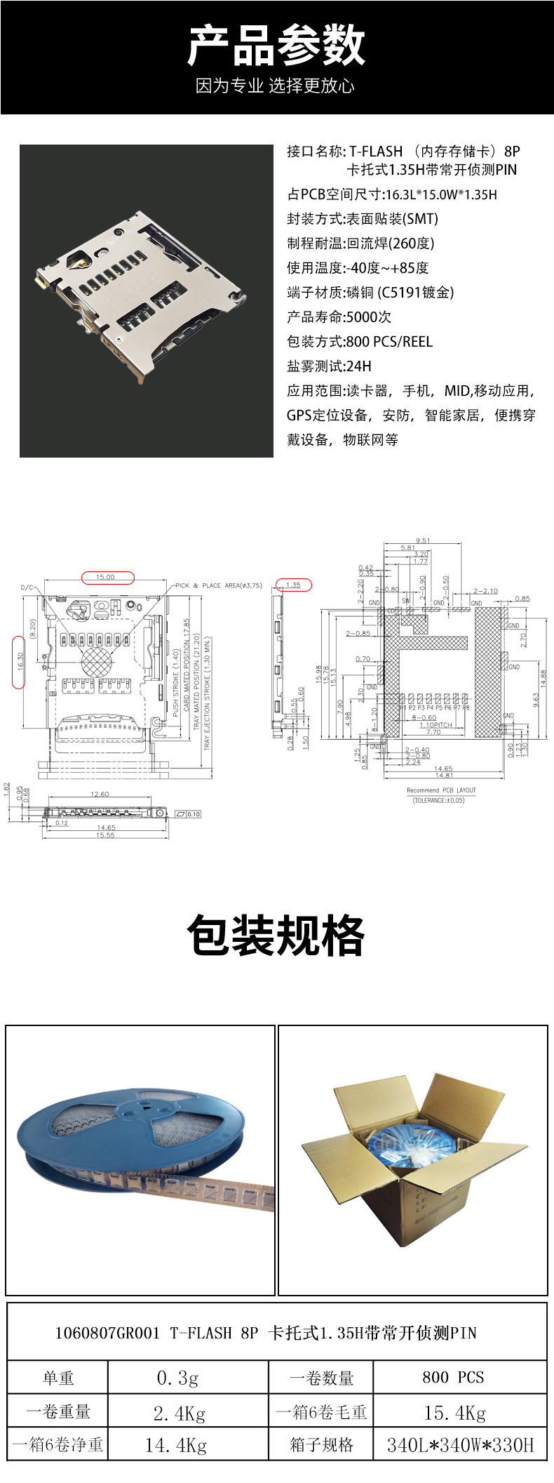 T-FLASH 8P 卡托式1.35H带常开侦测01-22